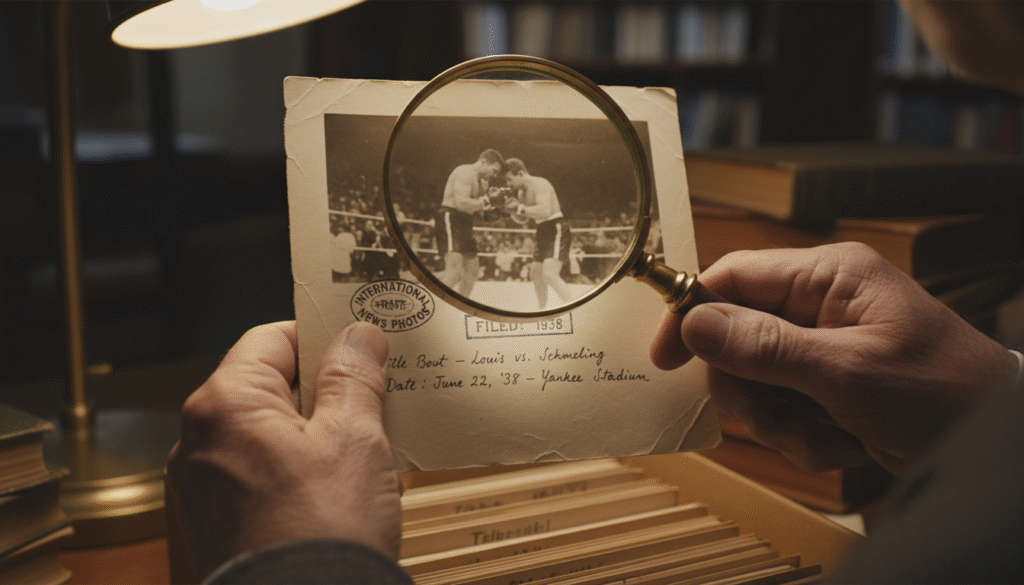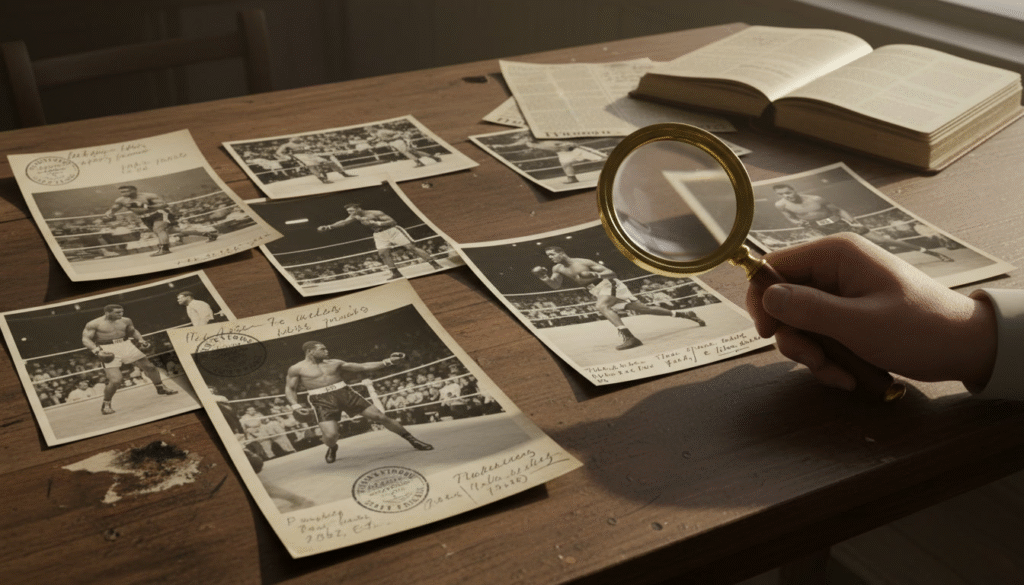 - Match backstamps and captions with known event dates (e.g., “Ali vs. Frazier I, March 8, 1971”).