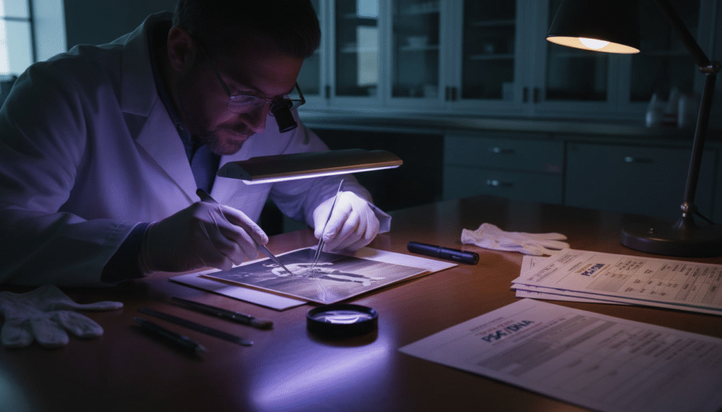 - UV or blacklight inspection can reveal later chemical papers inconsistent with early 20th-century emulsions.